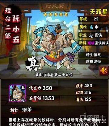阮氏三雄的毒杀阵还是颇有威力的!以阮小五组成的毒杀阵还是比较主流的阵容。玩家们可以优先考虑这个武将!