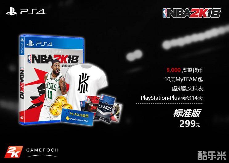 Take-Two亚洲发行副总裁Erik Ford首先公布了本次《NBA 2K18》国行标准版信息,《NBA 2K18》国行标准版售价299元人民币。除游戏本体外,还包含5000虚拟货币,10周MyTEAM卡包,Kyrie Ivring服装包和14天PlayStation?Plus会员。
