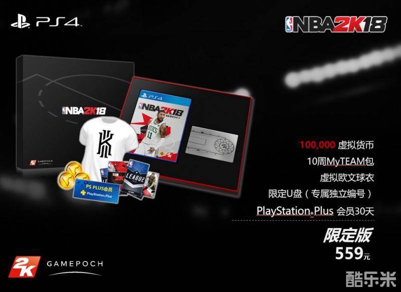 最后Gamepoch星游纪CEO陈乐公布了《NBA 2K18》限定版的内容,《NBA 2K18》限定版为本次国行的顶级版本,售价559元人民币。除了游戏本体外,还包含100000虚拟货币,10周MyTEAM卡包,Kyrie Ivring服装包,30天PlayStation?Plus会员以及专属U盘,每个专属U盘都有独立编号。