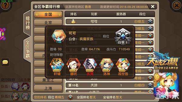本次《天域幻想》覆盖了全国所有省份城市地区,凡是国内的任意地区,皆可通过线上报名参赛。目前2016年9月赛季(9月1日——9月30日)正在火热开赛中,通过排行榜可以查看全国任意地区的天梯排行,想要勾搭大神,查看搭配阵容,就看你的了!