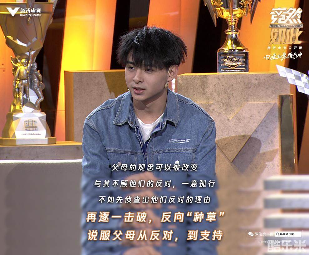 “在我成为职业电竞选手这条路上,最大的助力是我妈。”伞兵开场介绍便出乎大家意料。从小热爱电竞的伞兵和所有年轻人一样遇到过来自家长的阻力,但他却能拿出电竞中的战略思维,侦查出父母反对的理由,准确“反向种草“,把一度不理解电竞的妈妈转变成为他的“头号粉丝。”