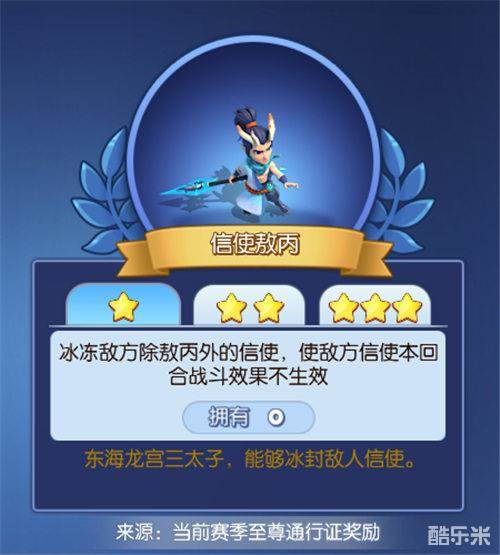 3星:冰冻敌方除敖丙外的信使,使敌方信使本回合战斗效果不生效,如果胜利额外获得2金币