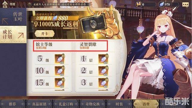 在书中店的消费一栏,第二个就可以看到成长计划,点击开卡,即可开启成长计划。