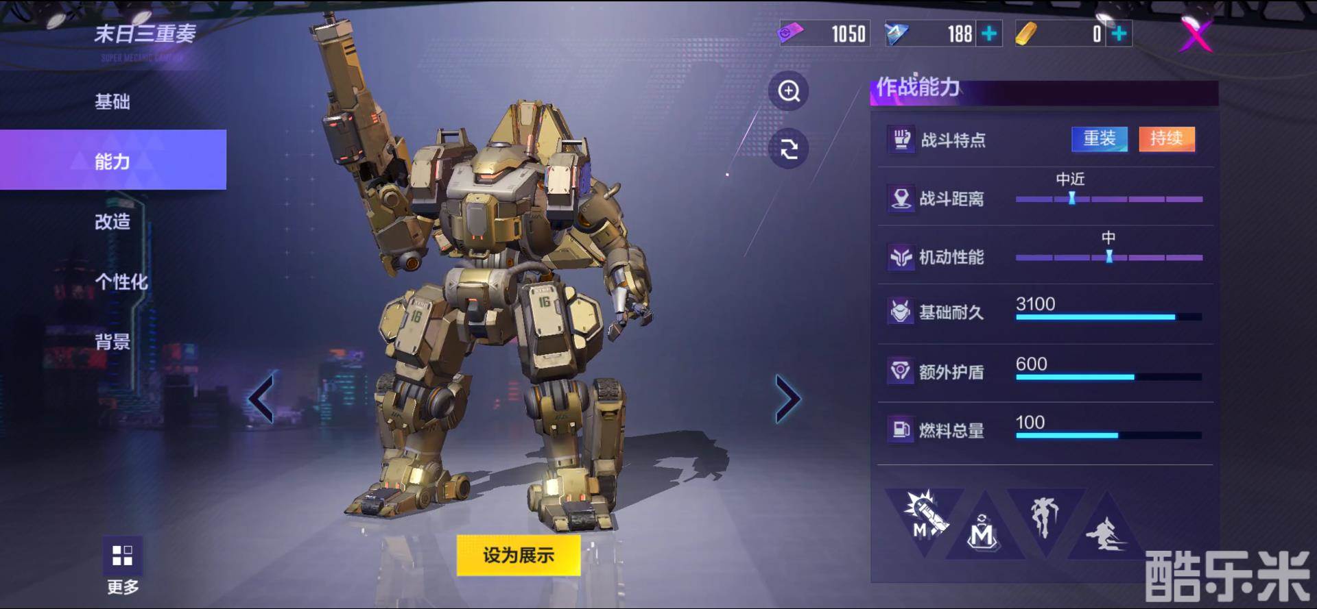 作为团队的肉盾担当,虽然机动性稍差,但是光能塔和光能护盾可以为队友提供火力分担,并且厄运光束还是带有滞空能力的哦~比较适合喜欢玩肉盾型机甲的玩家
