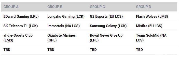 2017年世界冠军赛将会非常精彩,而每个组都将在9月底的时候添加一个新的队伍。目前每个组都有三只队伍已经完全确定下来。