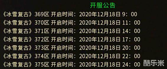 《冰雪复古》371区开启时间:2020年12月18日14:00