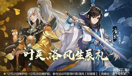 生辰礼活动期间,四人/八人秘境中,【叶英】【洛风】的伤害及血量将提高10%;如果少侠向【叶英】及【洛风】提交好感度道具,获得的好感度将提升20%。