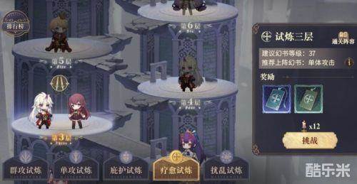 每一大类幻书对应一个试炼挑战,共有5类,每一类最高8层,不同层数掉落的资源品质和数量也都不同,1-3层掉落基础和普通资源,4-7层掉落普通到华丽品质资源,8层掉落最高品质的书签和试炼素材。