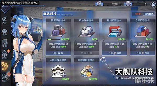 通过大舰队科技研发,可以增加大舰队席位、物资上限、石油储存上限、船坞扩容上限、仓库容量,降低喵箱购买成本。