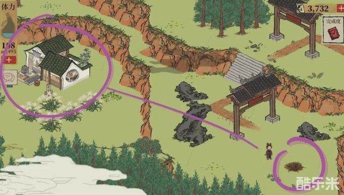 1、首先我们需要找到种植红碧桃树的空地,在地图中一共有两块空地。