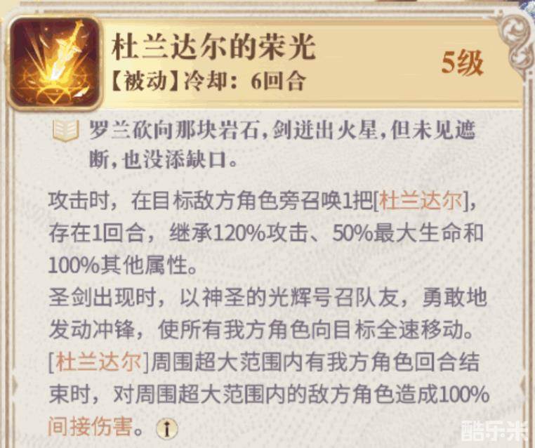 不过玩这个队伍需要把控好伤害,在召唤出杜兰达尔后,它的一回合没结束前击杀敌方。这样杜兰达尔就能一直存在。