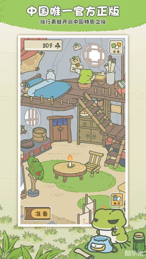 然后我们点击右下角的“小屋”返回房间里,在房间里点击左下角的“准备”按钮,开始为青蛙准备旅行的行李。点击行李中空白区域,放入便当、护身符等,就可以点击完成了。