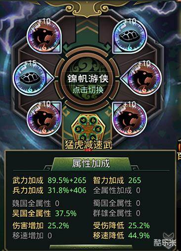 兵符的话,用4火凤2猛虎的较多,兔子大神都说了火凤好。但我比较喜欢用4猛虎2玄龟或者2混沌/睚眦(我的新兵符还没洗好)。主属性武力,副属性吴国全属性,武力,增减伤。火凤猛虎我都试过,打同阵容的跑跑4猛虎更稳一些,特别是2号位满级减速!防倾世拉,防群雄侧突,攒buff…真是要多好用有多好用啊。但打带骁勇的跑跑或者跑跑4骑用火凤更好,不然容易开不出技能。