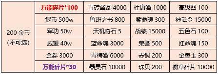 2、6个不同阶段中只能根据活动期间,累计充值金币数量所在阶段选择武将进行申请;如小明活动期间累计充值达到12W金币,则可以在列出的所有武将中选择一个武将,或者选择充值12w金币额度的澄源石(如武将和澄源石均不需要,则可以选择10w金币额度的进阶酒奖励);