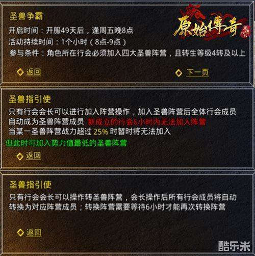 新增圣兽乐园,开服49天后,4转及以上玩家可参与,选择加入相应的圣兽阵营。
