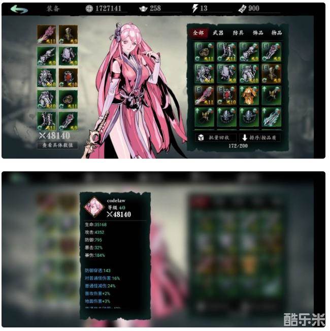 在装备上,用专门加强无限切割的刀和回血的配饰,这样保证沐小葵肉得一批的同时伤害还不错,然后还要用上加2点杀意上限的项链(万魔之母的紫杀会更好,之前没注意这个装备),杀意套的伤害加成才能打满
