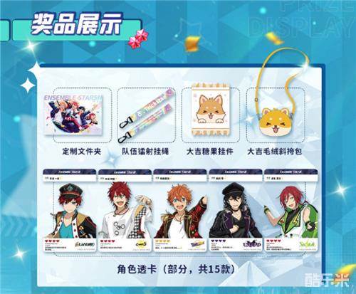 漫展期间,关注《偶像梦幻祭2》官方微博@偶像梦幻祭2、B站@偶像梦幻祭2助理君,即可获得定制文件夹*1。同时,现场点击游戏内菜单-我的档案,向工作人员出示制作人身份,即可获得随机角色透卡*1。