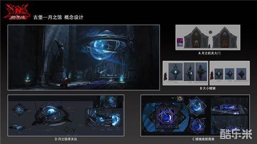 而在古堡内部,画风似乎却陡然一转,将外观上那种“恢弘式的恐惧”之感全部抛尽,转而以“幽暗寂静”来传达战斗即将发生这一信息。在月之馆内,场景以渐染的蓝与黑装点,同时,充满着古朴花纹的棱镜以及神秘复杂的图案更将这一部分场景的幽暗神秘表现了出来。而为了能够制作“浑天仪”这一模型,设计师更是认真研究了“浑天仪”的具体构造,并在查明典籍的情况下再多方询问才放心地制作出了月之馆浑天仪的模型,这一切都是为了能带给玩家非同一般的体验。