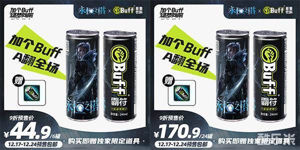 本次永恒之塔与Buff合力推出联名饮料,希望玩家能够随时随地补充能量,保持最佳游戏状态。新一代能量饮料Buff搭配独家限定道具,帮助玩家跨越游戏和现实,畅爽亚特雷亚。各位守护者们,九折预售,限时最低价,买到就是赚到,赶快行动起来吧!