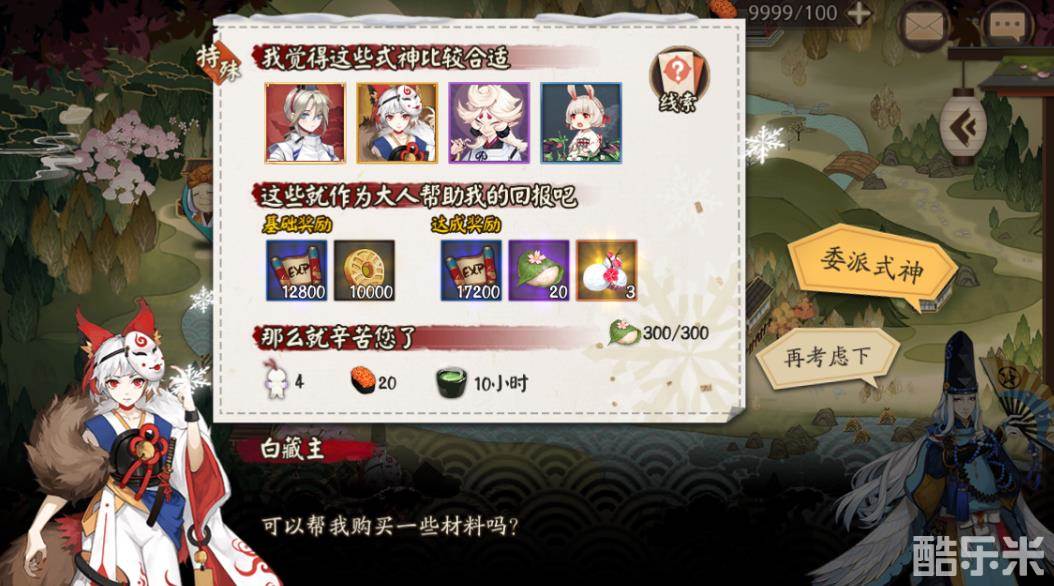 活动期间,式神委派玩法内将额外刷新出年节系列委派任务,系列任务共10个,每个耗时10小时,需按照系列任务顺序完成。
