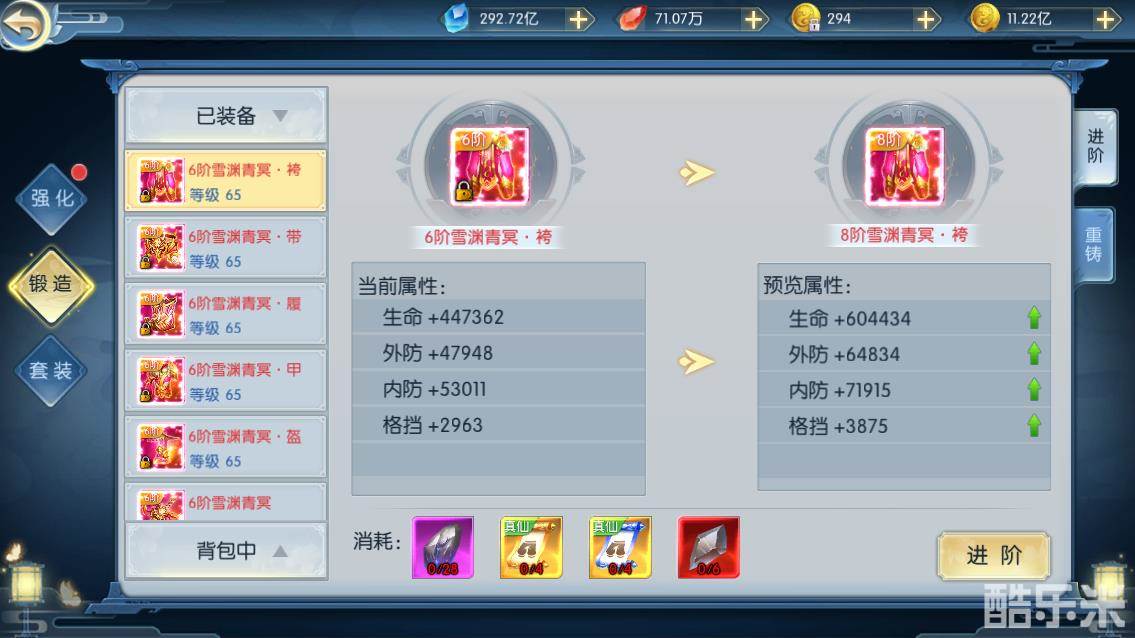 通过炼器系统可通过消耗装备材料将装备进阶至更高阶的装备,装备获得成长!