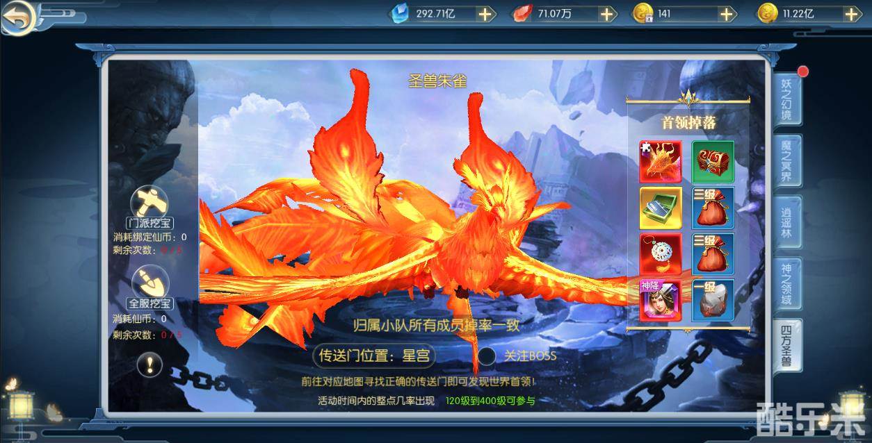圣兽朱雀是开放首领,击败圣兽朱雀可获得大量奖励,先培养成为高战力再去争夺