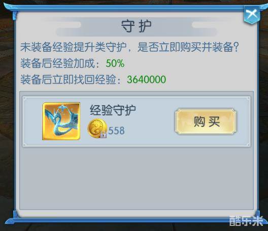 守护:它可以让你经验收益提高50%别看它要558仙币,但是买了之后能够让你使用一个月,如果绑定仙币够的话一定要买。