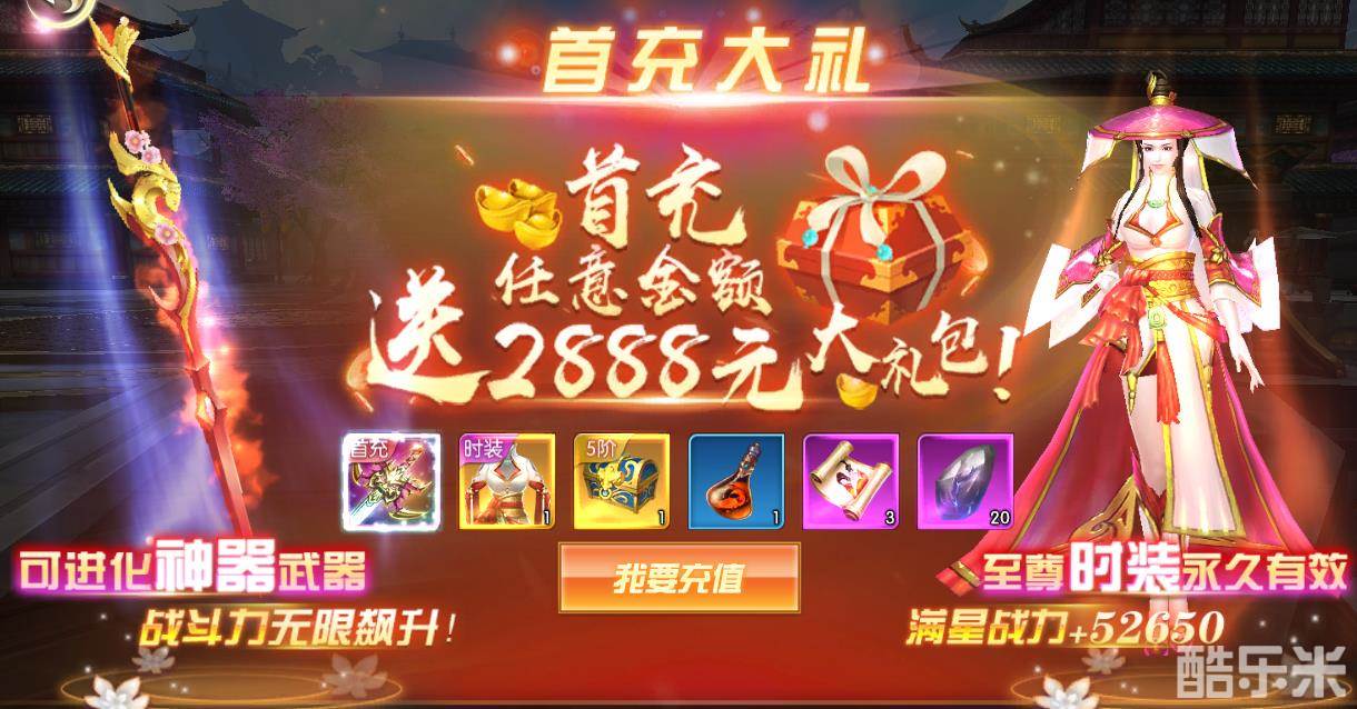 在《九天伏魔》中,必要的充值是必须的,例如首冲或在遇见心仪的商品时。举个例子来说,首充礼包玩家只需要充值6元,但却可获取到一件可进化的神器和一套永久时装以及相应的其他物品,如此在初期的发展过程中将会取得领先他人一步的机会。