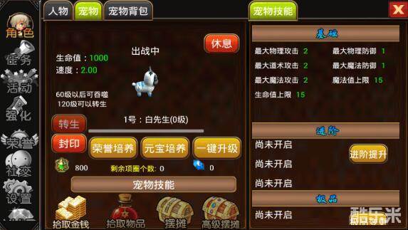 宠物培养:玩家可以通过宠物项圈来培养宠物,提升宠物等级。