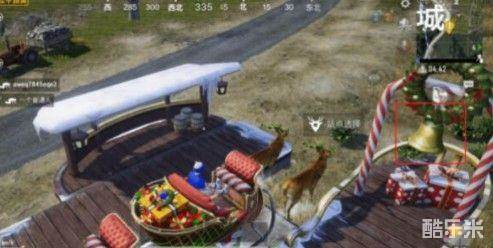 首先我们进入新出的冰雪模式中,在地图中会有驯鹿图标,这些位置就是有驯鹿车的站点,在这点这里会有很浓的圣诞气息,摇动如图所示处的铃铛就能够召唤出驯鹿车了。