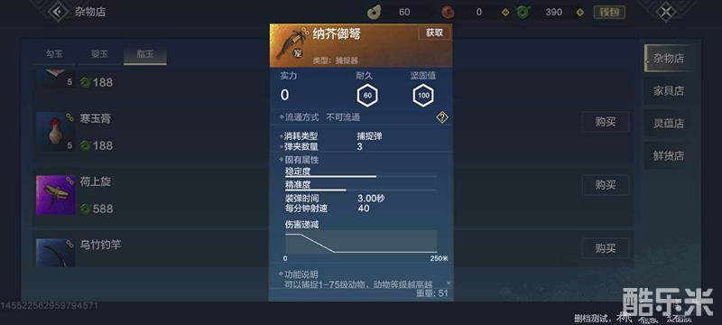 二、商店购买:玩家可以直接点击右上角的更多建,进入商店界面在商店界面的杂物店中,我们就可以花费200脂玉购买到橙色品质的纳芥御弩了(价格略贵)