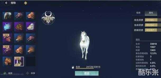 白马的终极形态就是龙马,这里提供一个进化方案:白马+鹿角+白雕翅膀。注意白马自身的战力较低,打鹿还好,打白雕是真的费劲。所以弄一只龙马,是非常消耗资源的。