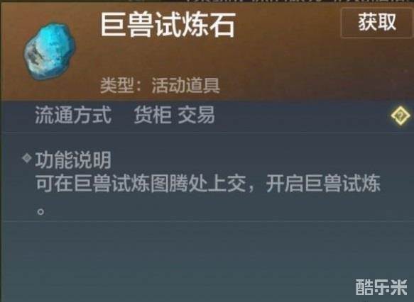 用于神兽图腾可召唤出百年千年万年级boss和围狩图里的神兽。(刷高等狩猎图腾献祭奖励几率掉落)