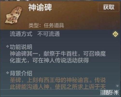 用于牛首柱,可召唤魔化蚩尤。(刷首领图腾也就是“神人传说”几率掉落)