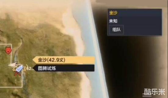 然后打开大地图,找到如下标志,前往对应的地方后实用淘金釜即可自动进行淘沙采集了。在快捷栏中拿出淘金釜,点击普攻,它会一直自动淘金。