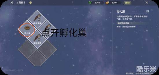 不能研究兽谱的小伙伴,需要先提升至第一个息壤中关于兽谱的,点开孵化巢,进行研究
