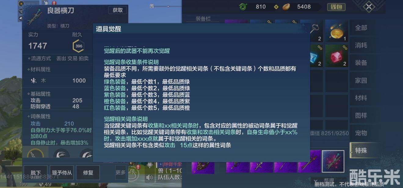 1、觉醒词条决定武器外观,技能,觉醒材料,和装备品质无任何关系。