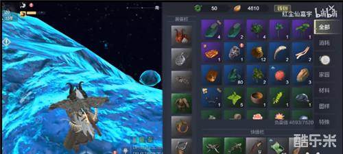 3、可以选择一个飞行的坐骑白翎雕飞到太空,到达之后就可以自己动手建造房子了。