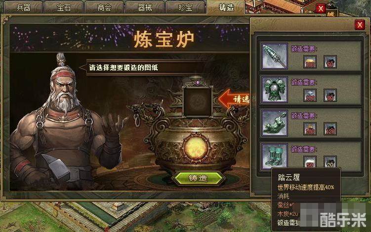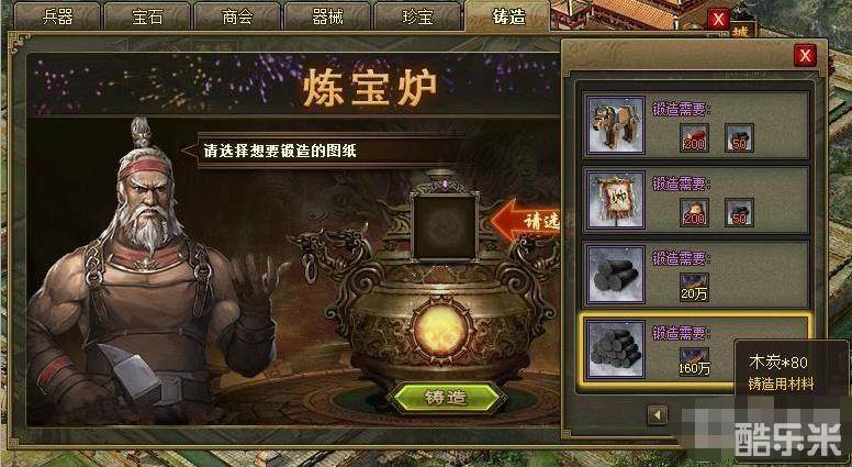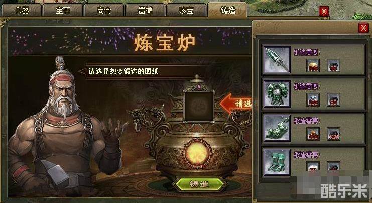 怎样铸造?先点炼宝炉,选你要铸造的宝物图纸。