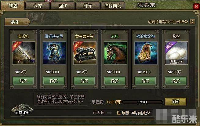 蚕丝出现了。50w银币买5蚕丝,铸造需要50蚕丝,就是买10次需要500w银币。这里要注意:一定要添加图纸后才能在商店里刷出铸造材料,不添加刷不出,而且铸造哪个宝物就只对应出现哪种材料,不会出其他的。