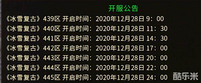 《冰雪复古》440区开启时间:2020年12月28日11:00