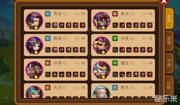 在英雄管理界面里面,我们可以看到现在已经拥有的英雄。尚未拥有的英雄会置于已拥有英雄的下方。同时,玩家可以选择前排、中排、后排来筛选范围。