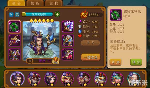 点击英雄头像,可以看到每个英雄的具体信息,包括技能、属性面板、装备等等。