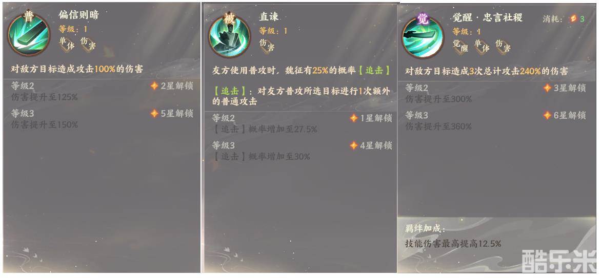 Ⓐ【魏征】适合普攻较多的名士阵容,但是名士大多数二技能要比一技能更强横,这就使得【魏征】的【追击】概率触发很尴尬。