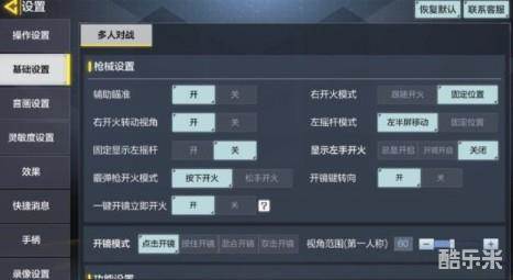 一键开镜立即开火打开,二指玩家只有一个开火键,打开这个功能,近身遭遇战的时候,按下开火键能马上打出子弹,不用等一键开火自动开镜,开了镜才能开枪的时间了,多一些胜算。近身迅捷出刀打开,把出刀键位跟开枪键位重叠,放在一起,因为用的是一键开火开镜模式,特别近距离一开火开镜实在是看不见人,敌方范围在出刀距离内,开火键就变成出刀键了,需要点反应。
