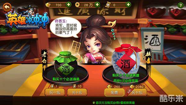 Hello,主公亲们!《英雄冲冲冲》游戏中,名将如林,美女如云,那么如何名将美人兼得呢?说到这儿,不得不提到传说中的酒馆系统,只要买酒,名将美人定是手到擒来!