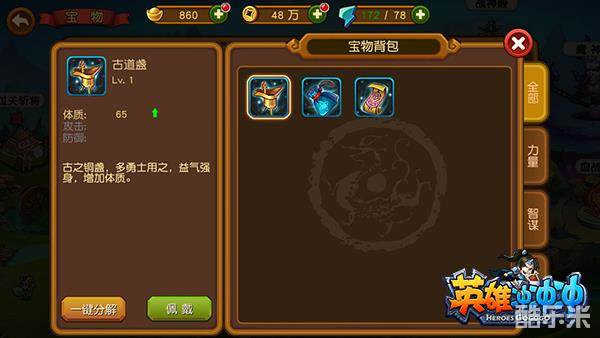 《英雄冲冲冲》宝物秘境系统可是宝物的生产基地,主公大大可要卖力夺宝哦!