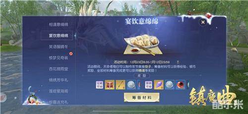 即日起至2021年1月12日,“晴冬欢歌”系列活动都将在中州大地上持续开放。天命者们每天登陆,就能参与“相逢意绵绵”、完成签到领取不同的珍稀奖励。此后,辞旧迎新必不可少的活动包饺子, 也正等着天命者们到来——收集材料、完成不同口味的饺子,同样有众多奖励送上,帮助其他天命者筹备材料,还有额外好礼相送!