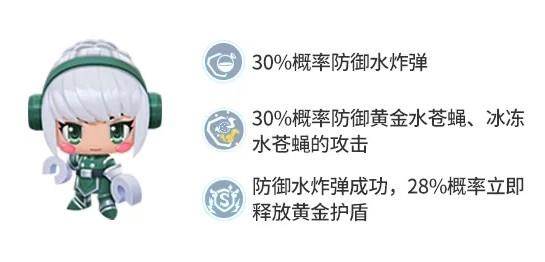 在比赛时,如果你成为冰冻水苍蝇、 黄金水苍蝇的目标,满级的卡洛儿有42%的概率帮助你抵御黄金水苍蝇和冰冻水苍蝇的攻击。