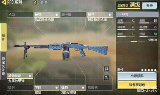 使命召唤手游rpd作为游戏中的一个轻机枪,想要发挥出足够的威力,那么陪嫁的搭配就是非常重要的,机枪的特点就是可以连发,但是缺点也是非常的明显,稳定性和子弹弹药量都是限制输出的一个内容,下面小编带来的就是使命召唤手游rpd配件搭配攻略,看看怎么发挥出rpd的威力吧。